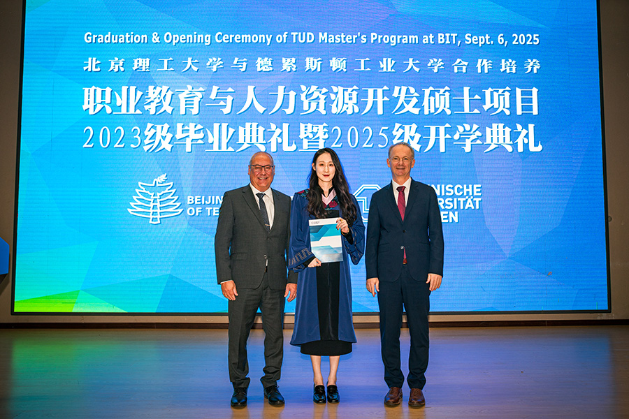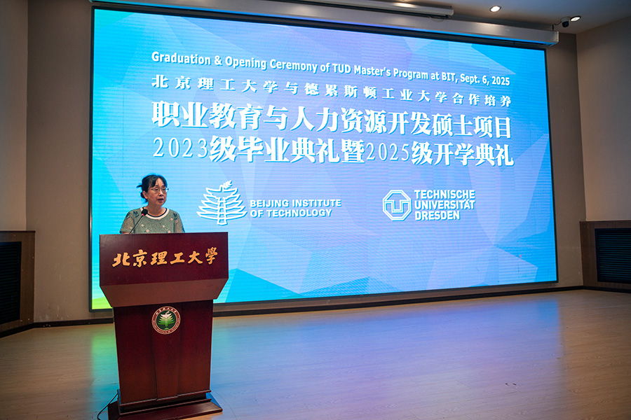 2025年9月6日下午,beat365中文唯一官网在中关村校区7号楼报告厅隆重举行beat365中文唯一官网与德累斯顿工业大学合作举办职业教育与人力资源开发硕士项目2023级毕业典礼暨2025级开学典礼。出席典礼的有德累斯顿工业大学职业教育与beat365中文唯一官网考试委员会主席Thoms Köhler教授、教育学部教学主任Steffen Kersten教授、中方教师代表苑大勇、beat365中文唯一官网林杰院长、徐承俊书记、蒋志湘副院长。beat365中文唯一官网部分教职工、全体毕业生、新生及部分家属一起参加了典礼。典礼由蒋志湘副院长主持。
