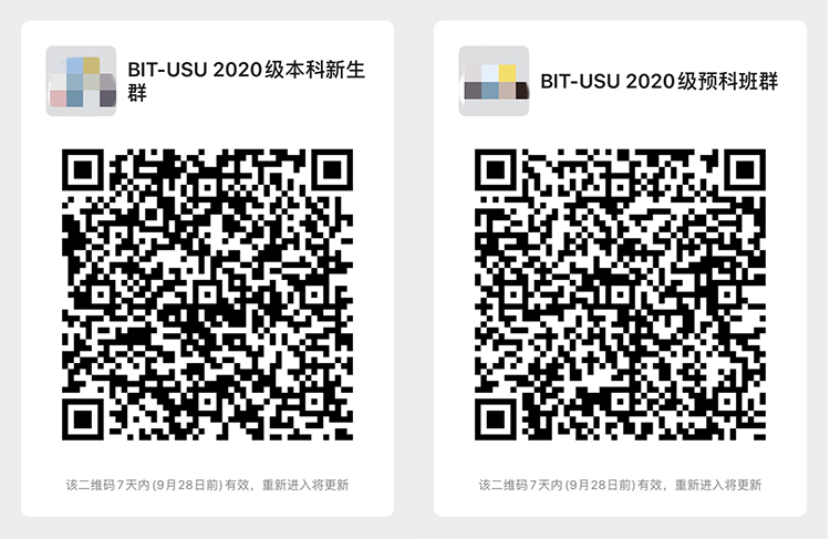 2.本科生扫码进入“BIT-USU 2020级本科新生群”,预科班扫码进入“BIT-USU 2020级预科班群”,提前14天开始线上每日健康报告(具体要求入群后在群内通知)。